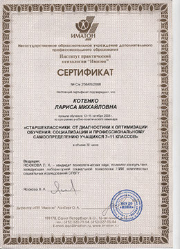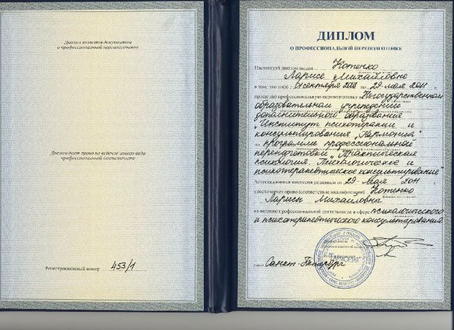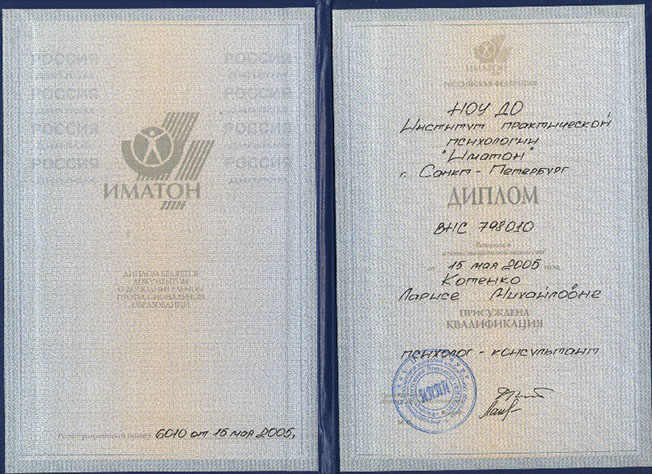 - Институт практической психологии Иматон (СПб) – психолог-консультант;